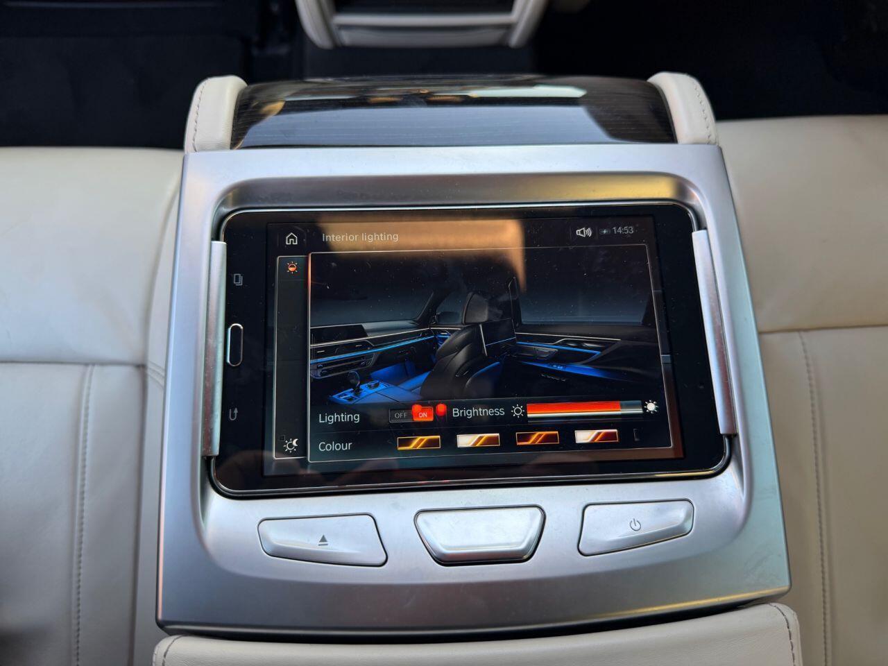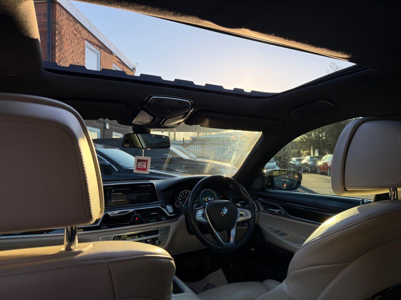 The M Sport trim enhances its already sophisticated presence, and it comes equipped with hugely desirable features : Electric Glass Sunroof, Front + Rear Heated Seats, Harman Kardon Sound System, Rear Electric Sunblinds, Heads Up Display, 20" Alloy Wheels, Executive Package (includes power rear seats that can recline significantly, a fold-out footrest, and a central rear console with a removable Touch Command tablet for controlling climate, lighting, massage, and entertainment features. This package turns the back of the car into a high-end, four-seater environment with features like rear seat entertainment screens and a fold-out table.)